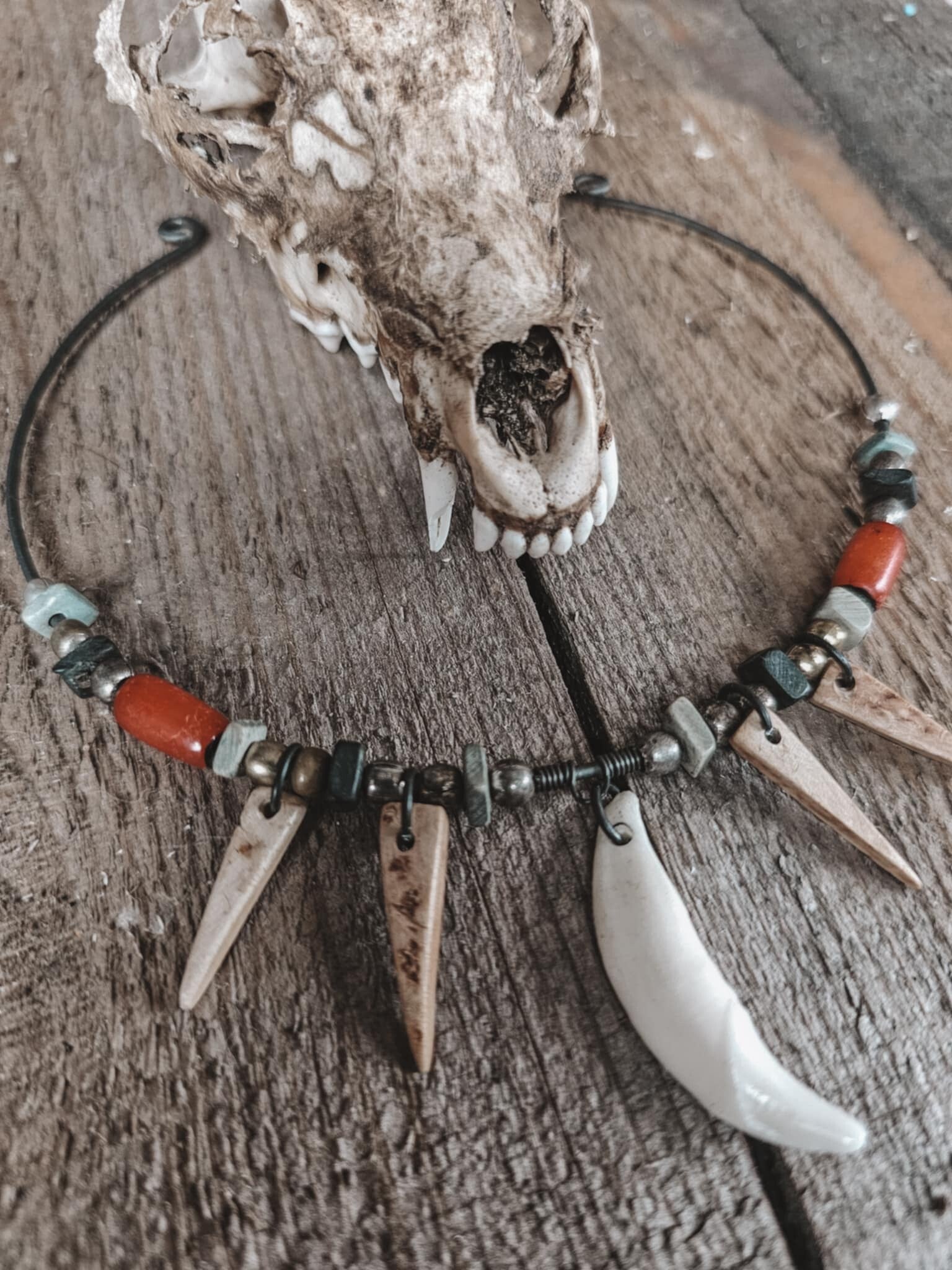 Dust & Spirit combines the raw essence of coconut shell, the primal energy of coyote tooth, and the ancient power of hand-strung beads. A necklace that whispers of forgotten lands and the spirits that walk them, worn by those who honor the wild and untamed.